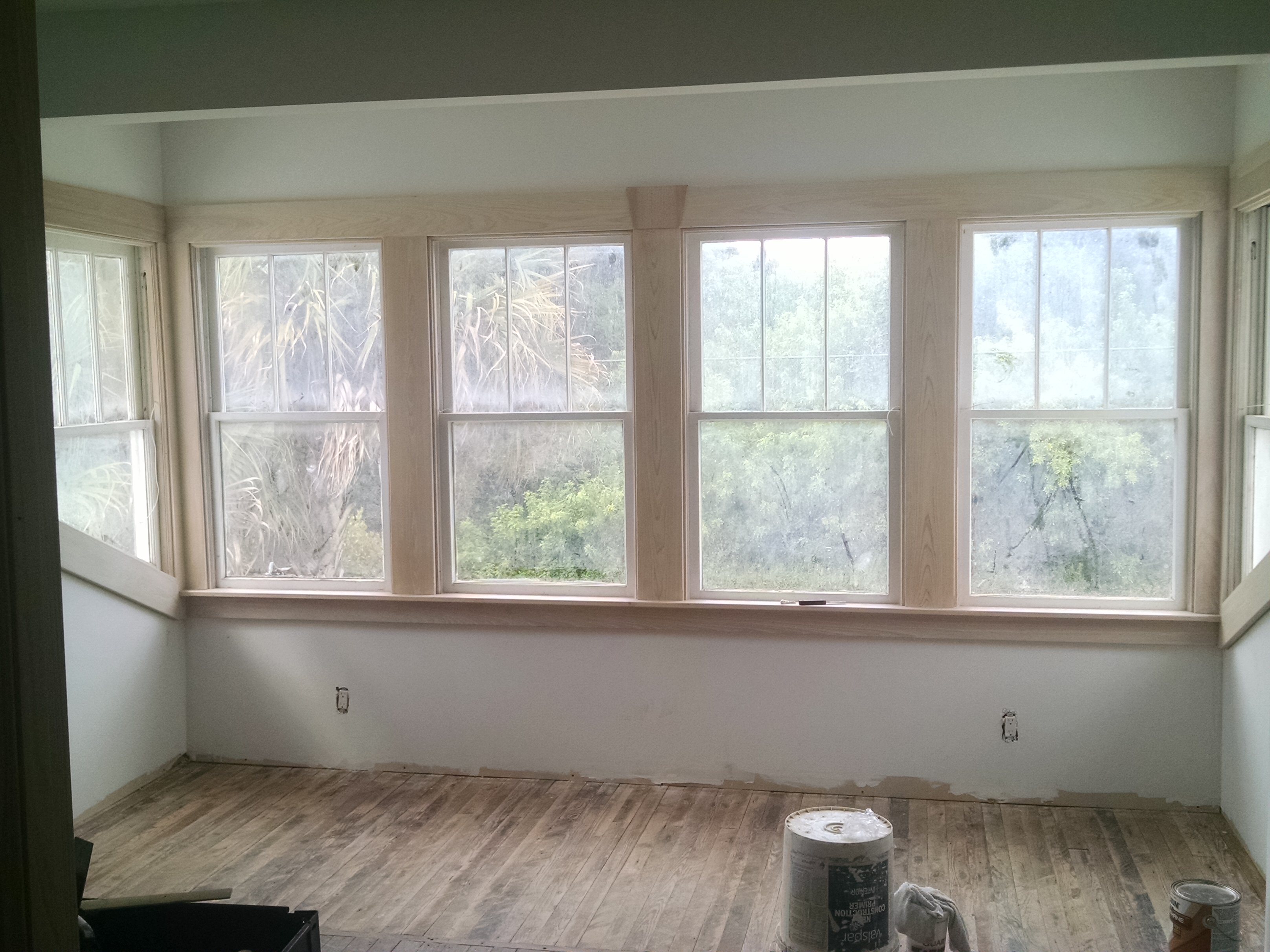 Progress! got most windows upstairs done, added some latex white paint to some latex varnish and like magic pickled white finish to match the doors I finished couple weeks ago.