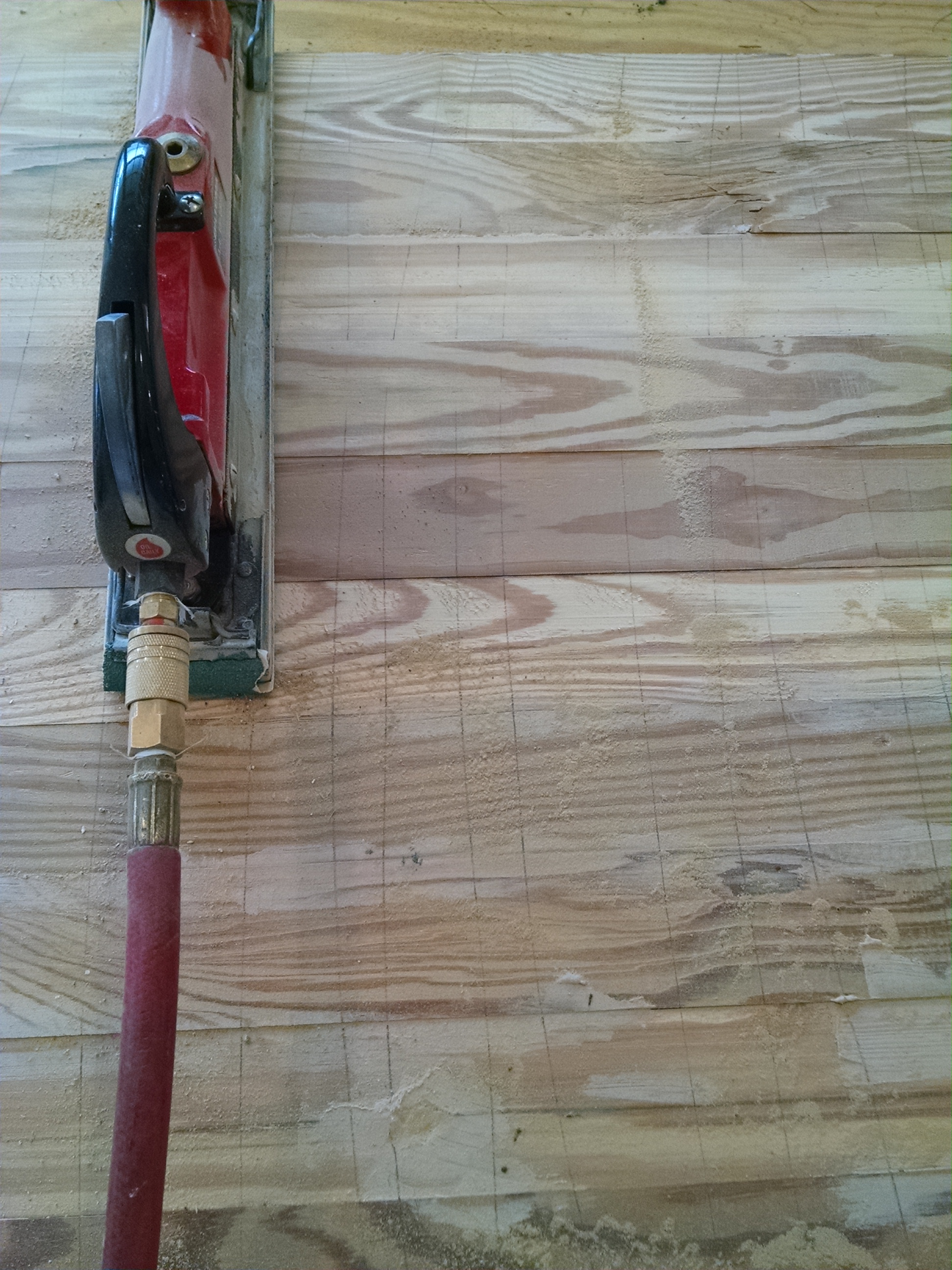 After sanding is complete there is much repair to do, many loose boards to tighten, some may need replacing.