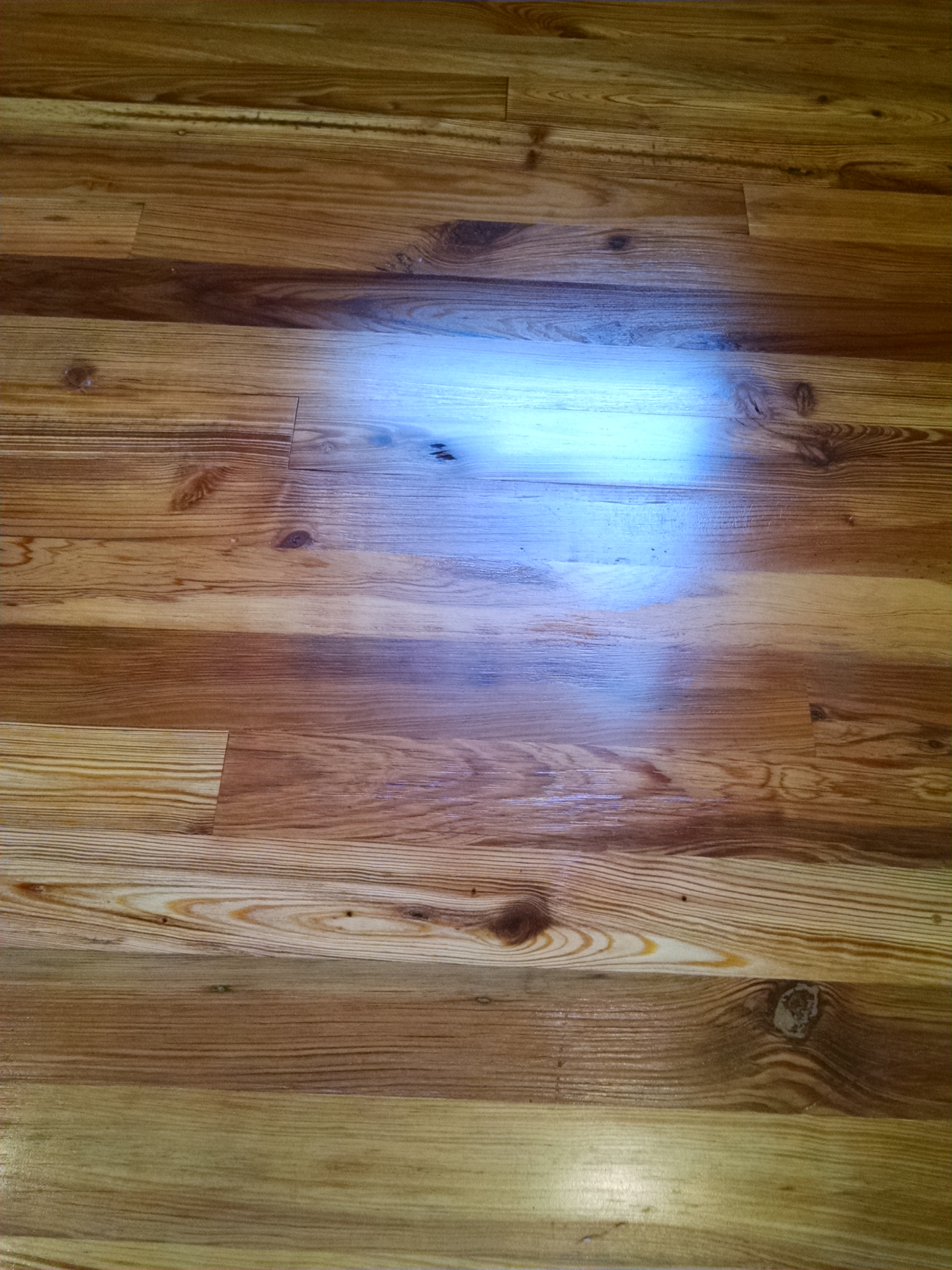 The floor upstairs AND downstairs is RUINED, only way to fix it is rent a belt sander and take it down another 1/8 inch to sand all the damage out. My two week plan turned into four weeks of sanding away much of the damage and will now need a satin finish to hide the rest.