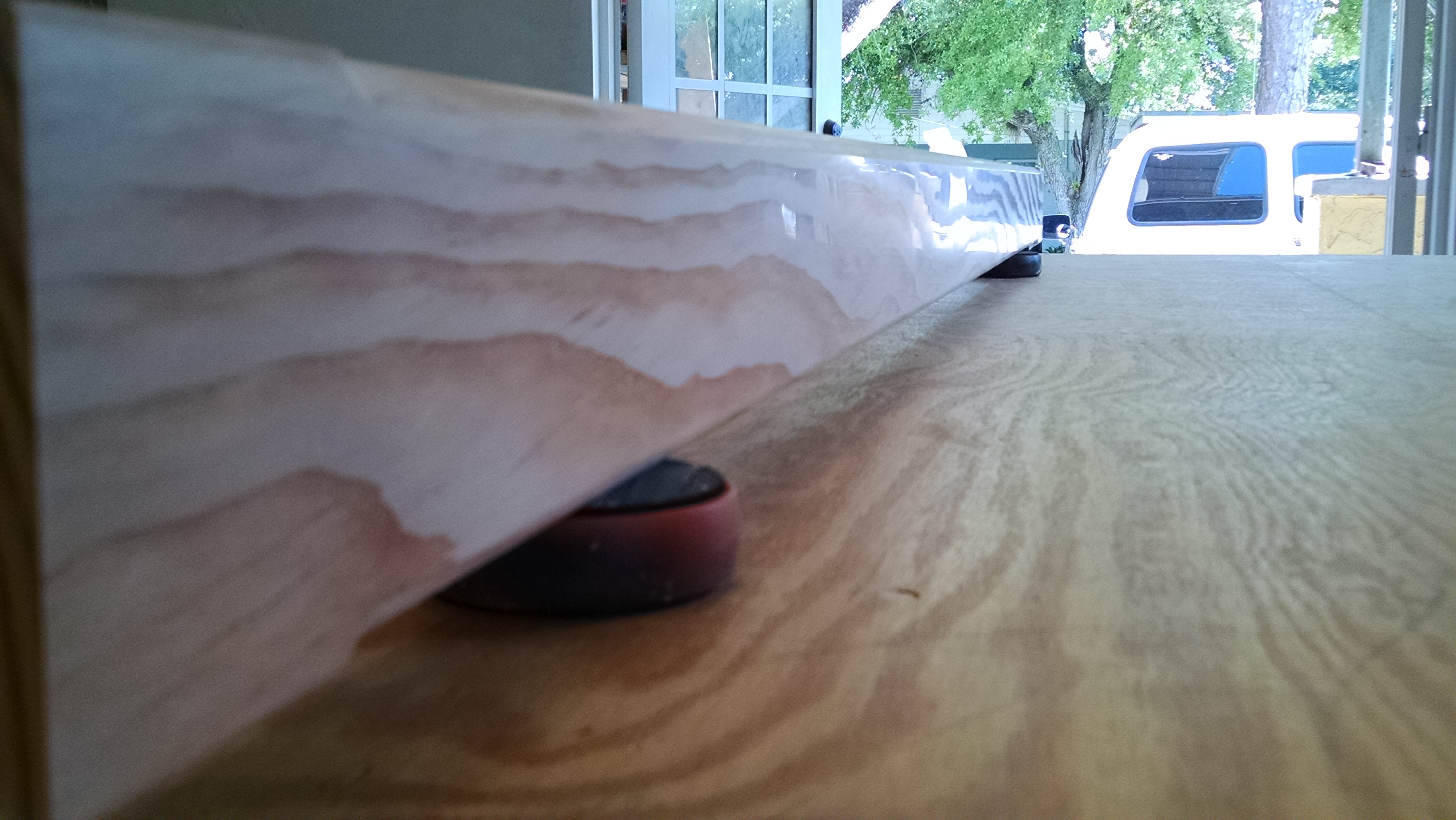 Had to plane some boards from 3/4 to 1/4″ in places to clear the 4x4s…. Treads and Risers getting a face lift before installing, lots of glue, wood filler and sanding.